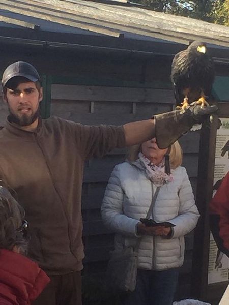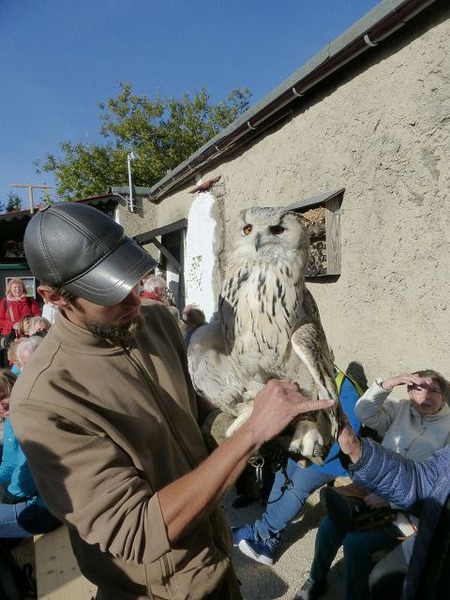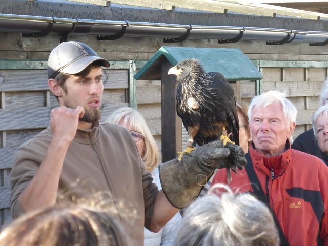 Nach dem Start ging es zunächst hinauf auf den Feldberg, den höchsten Berg im Taunus. Hier wurde die Geschichte der Falknerei eindrucksvoll von Falkner Wick dargestellt. Danach erläuterte er die verschiedenen Greifvögel, deren Unterscheidungsmerkmale, Lebensräume und Fangarten.
