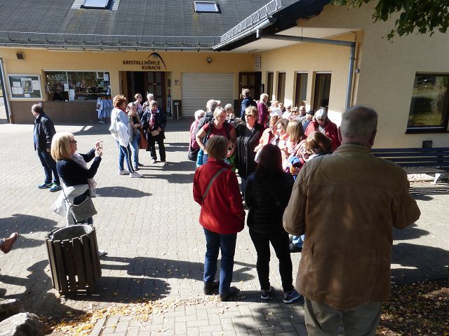 Anschließend ging es weiter von der Höhe in die Tiefe, die Kristallhöhle in Kubach, die einzige in Deutschland. Der tiefste Punkt liegt 74m unter der Oberfläche. Hierzu mussten 456 Stufen runter (und am Ende auf einem etwas anderen Weg 451 Stufen hinauf) bewältigt werden. Den beiden Gruppen wurde eindrucksvoll die Entdeckung der Höhle geschildert. Auch wurden die Kristalle verständlich erklärt. Wer sich die Treppenstufen nicht zutraute, konnte sich im Museum umfassend informieren.